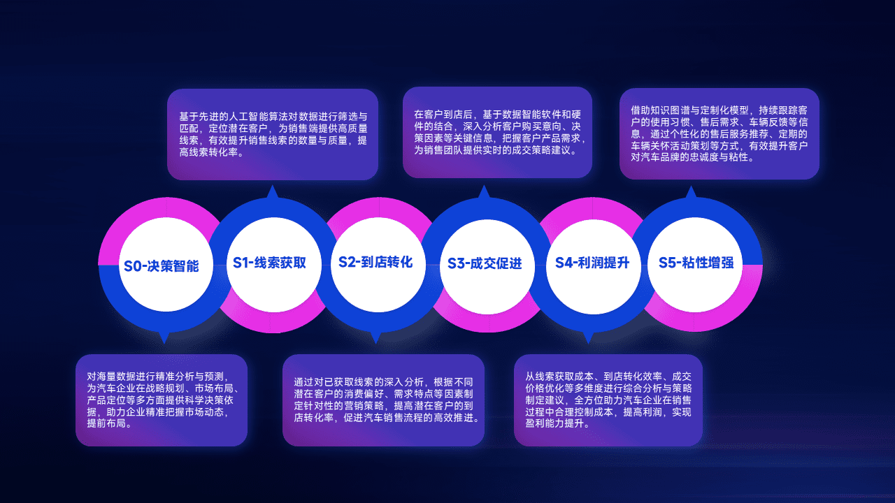 通过拓宽潜在客户来源、、、优化线索分配并提高到店转化率,,,,以增强销售效率。。。。同时,,利用线索数据不断优化分析模型,,,,有效提升转化率,,扩大营销影响力。。